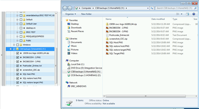 In this example, we have placed some files in the shared folder on the NAS. You can see the files in both Windows Explorer and in CSSB.